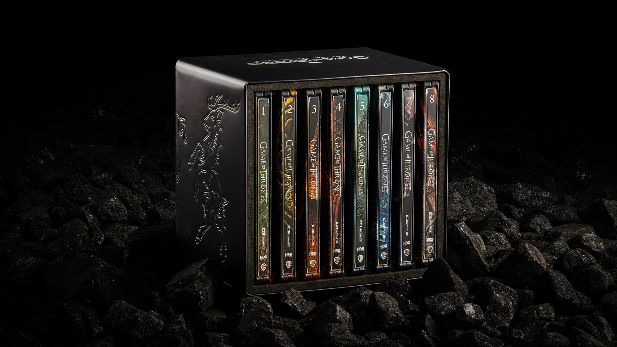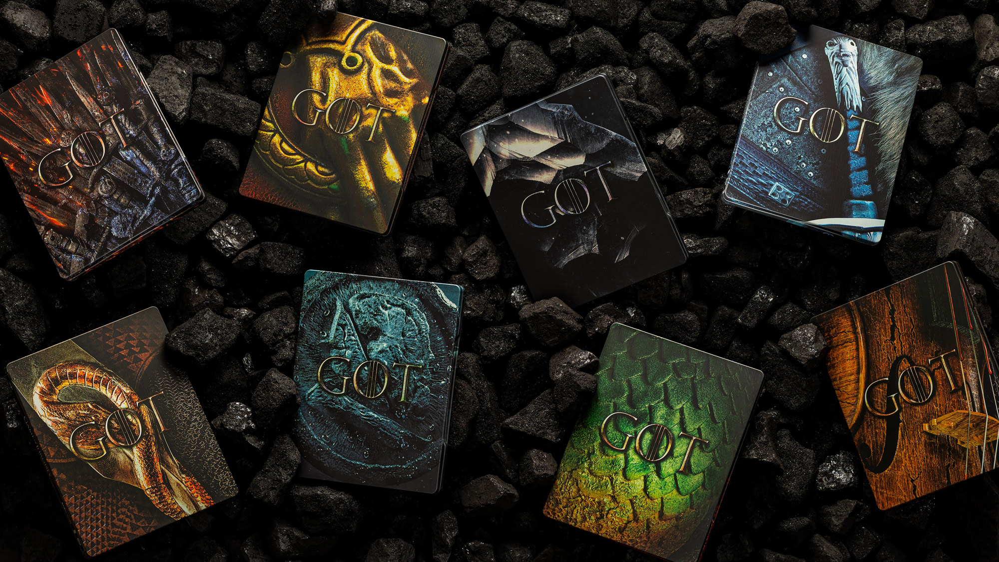 We created two complete packaging collections for the 4K reissue of Game of Thrones, from limited edition steelbooks featuring hyper-real objects to 3D-rendered animal boxsets.